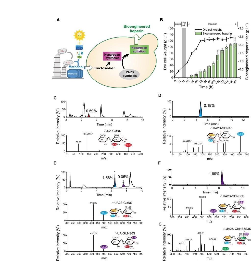 图3 工程化毕赤酵母从甲醇中生产生物工程肝素