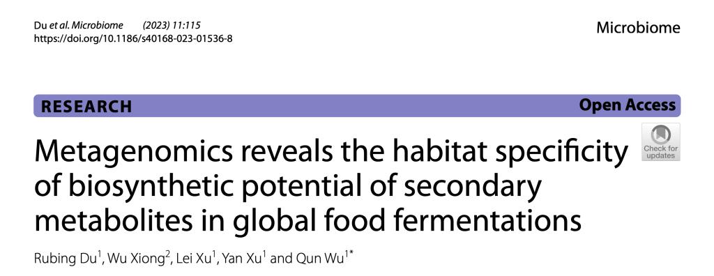 近期,世界杯2026年国际足联世界杯徐岩教授团队吴群教授课题组在发酵食品微生物方面取得重要进展,研究成果“Metagenomics reveals the habitat specificity of biosynthetic potential of secondary metabolites in global food fermentations”正式发表于Microbiome(Q1,IF: 16.837)。Microbiome是微生物领域的国际权威期刊,在微生物领域中排名6/158 (期刊引用指数JCI)。
