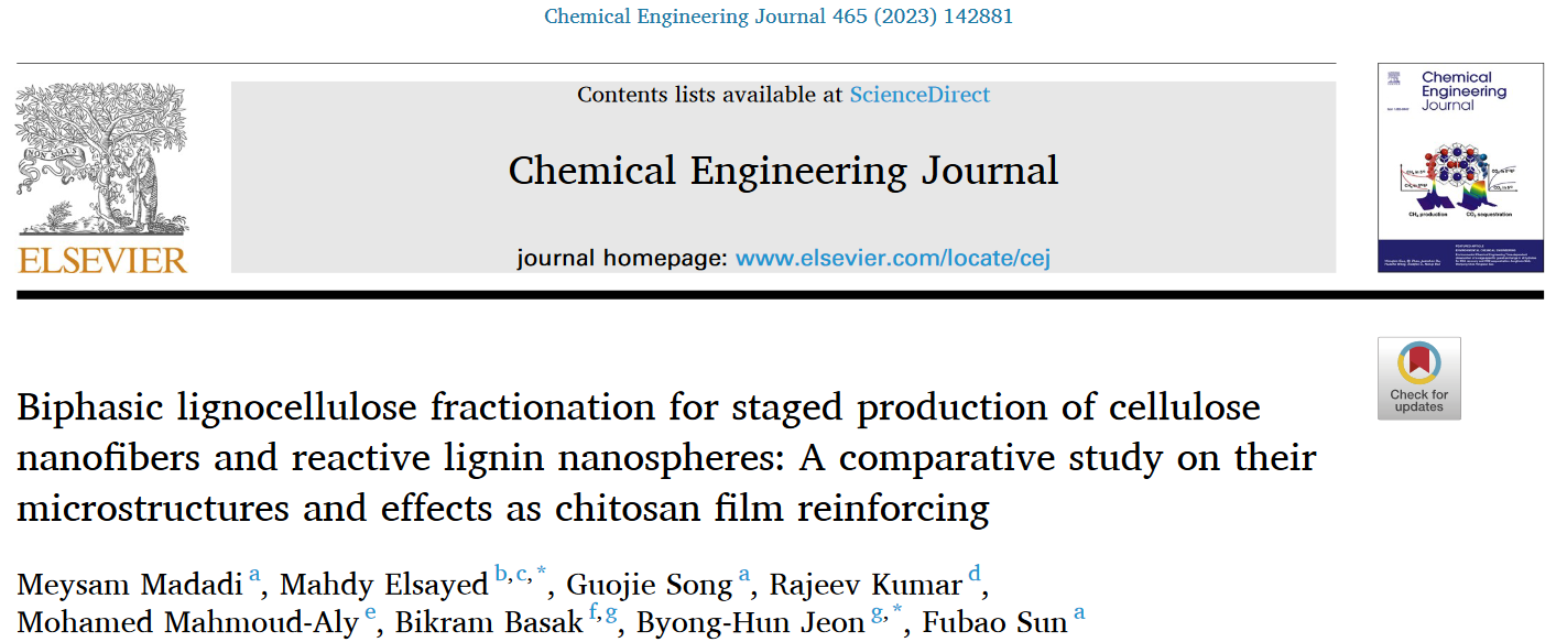 近期,世界杯2026年国际足联世界杯孙付保教授研究团队在利用木质纤维素生物质转化为绿色纳米材料方面取得重要进展,研究成果“Biphasic lignocellulose fractionation for staged production of cellulose nanofibers and reactive lignin nanospheres: A comparative study on their microstructures and effects as chitosan film reinforcing”正式发表于Chemical Engineering Journal (一区, Top, IF=16.7)(https://doi.org/10.1016/j.cej.2023.142881)