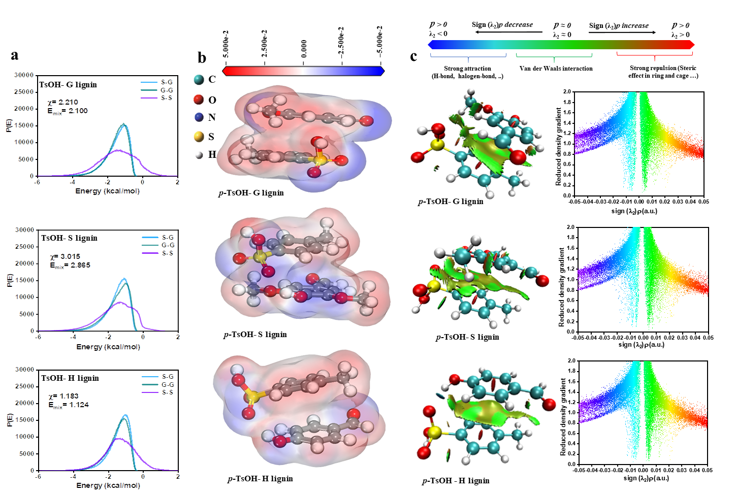图3对甲苯磺酸与木质素单元的相互作用能量分布