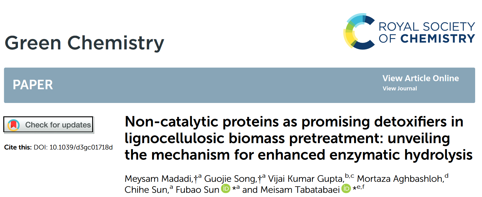 近期,世界杯2026年国际足联世界杯孙付保教授团队在研究先进预处理方法促进纤维质原料水解制糖方面取得重要进展,研究成果“Non-catalytic proteins as promising detoxifiers in lignocellulosic biomass pretreatment: unveiling the mechanism for enhanced enzymatic hydrolysis”正式发表于Green Chemistry (一区, Top, IF=9.8)。