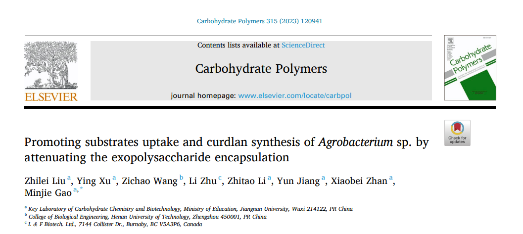 近期,世界杯2026年国际足联世界杯高敏杰教授团队在低分子量热凝胶的高效制备方面取得重要进展,研究成果“Promoting substrates uptake and curdlan synthesis of Agrobacterium sp. by attenuating the exopolysaccharide encapsulation”正式发表于Carbohydrate Polymers (IF =/info/1021/ /11.2) (https://doi.org/10.1016/j.carbpol.2023.120941)。
