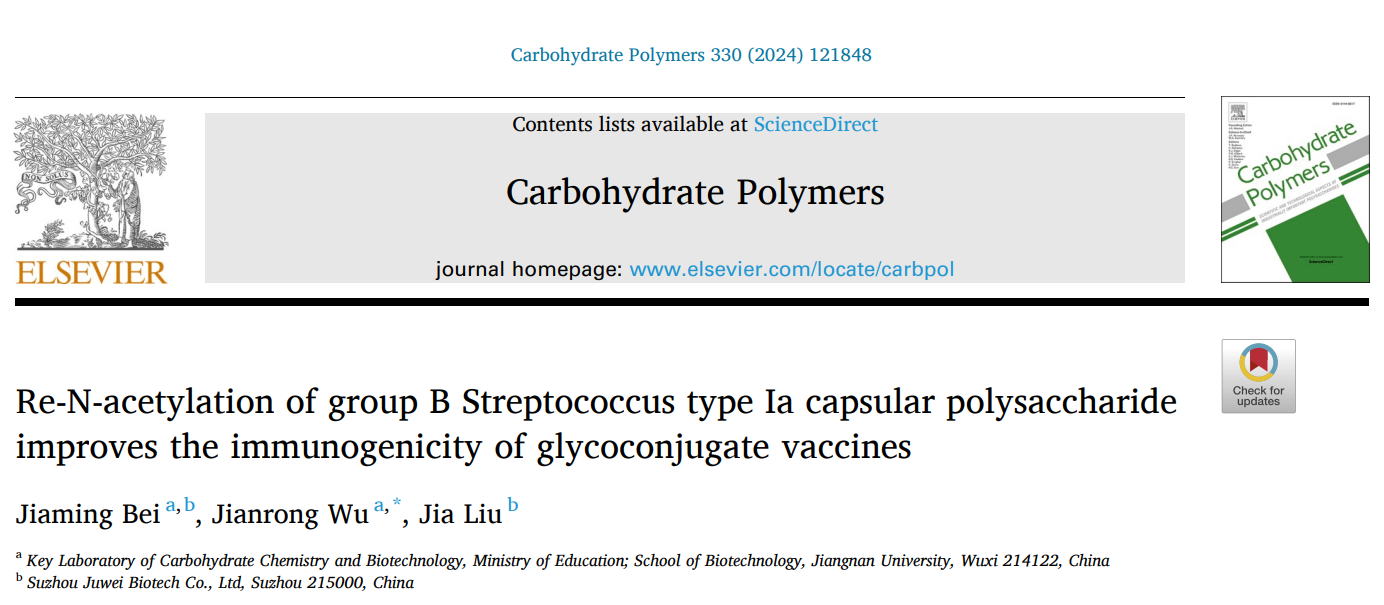 近期,世界杯2026年国际足联世界杯高敏杰团队吴剑荣老师在Ia型B族链球菌荚膜多糖的结构与功能方面研究取得重要进展,研究成果“Re-N-acetylation of group B Streptococcus type Ia capsular polysaccharide improves the immunogenicity of glycoconjugate vaccines”正式发表于Carbohydrate Polymers (IF =/info/1021/ /11.2) (https://doi.org/10.1016/j.carbpol.2024.121848)。
