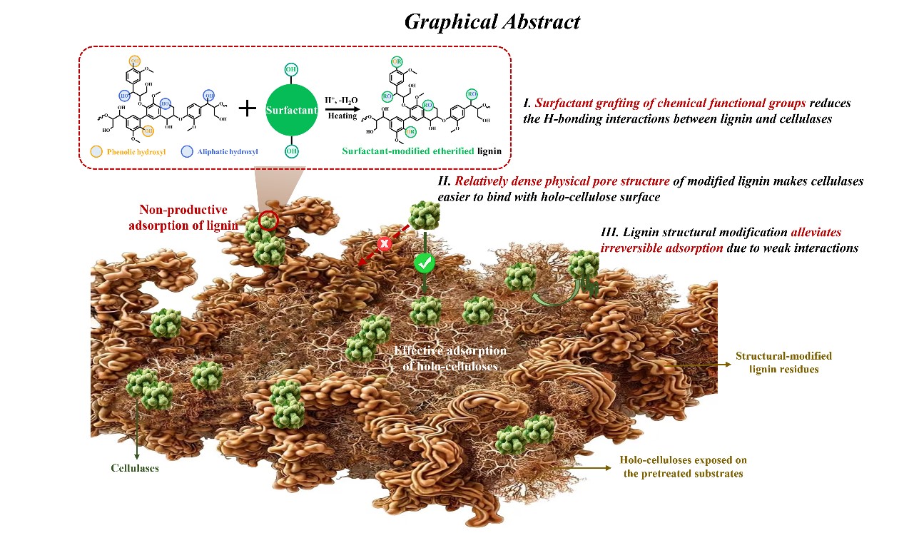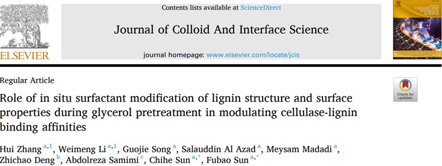 近期,世界杯2026年国际足联世界杯生物资源与生物炼制研究团队在表面活性剂修饰型预处理增效纤维质酶解作用方面取得重要进展,研究成果“Role of in-situ surfactant modification of lignin structure and surface properties during glycerol pretreatment in modulating cellulase-lignin binding affinities”正式发表于Journal of Colloid And Interface Science(一区, Top, IF 9.4)。