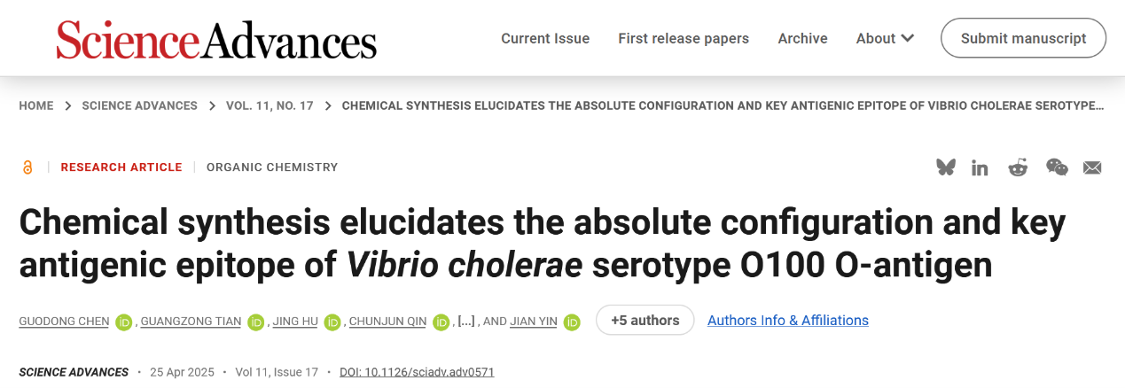 近期,江南大学2026年国际足联世界杯、糖化学与生物技术教育部重点实验室尹健教授团队在致病菌糖链抗原的全合成及抗原性研究方面取得新进展,研究成果“Chemical Synthesis Elucidates the Absolute Configuration and Key Antigenic Epitope of Vibrio cholerae Serotype O100 O-Antigen”发表于Science Advances(https://doi.org/10.1126/sciadv.adv0571)。
