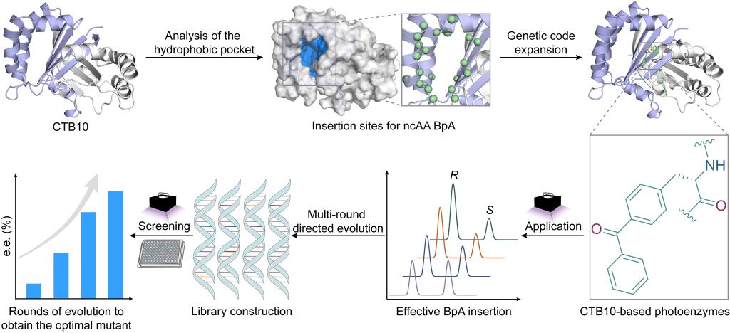 图2 基于CTB10骨架蛋白构建人工光酶用于催化反应