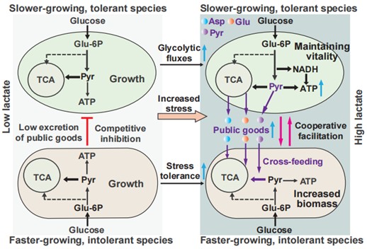 在自然界与人类生活中,酸性环境无处不在。从赋予泡菜爽脆口感、塑造酸奶独特风味的发酵过程,到酿酒工业中复杂的微生物转化,乃至维系人体功能的肠道生态系统,以乳酸菌为代表的核心微生物不断产酸,形成对绝大多数生命形式都充满挑战的“高压”环境。明确微生物在高酸环境下耐受机制及代谢功能对食品发酵、工业生物转化、肠道健康至关重要。然而,现多聚焦于耐受菌株的挖掘、组学分析与适应性进化,这些体系中种群应对酸胁迫环境的生理和代谢反应依然不清楚。