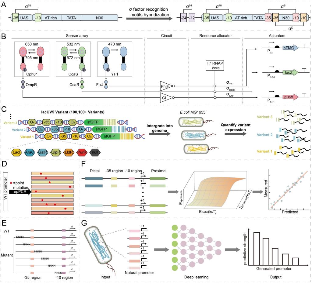 在合成生物学与生物制造领域,基因表达调控元件是决定细胞转录与翻译效率的重要顺式作用元件,主要包括启动子、终止子以及 5′ 非翻译区等。这些元件通过调控 RNA 聚合酶结合、转录终止以及翻译起始效率,在代谢通路优化、多基因表达平衡以及人工生物系统构建中发挥关键作用。通过对这些调控元件进行工程化设计,可在不改变编码基因功能的情况下灵活调节基因表达水平,从而优化代谢通路效率并提升微生物细胞工厂性能。然而,基因表达调控涉及复杂的分子识别与动态调控过程,往往呈现出明显的非线性特征和上下文依赖性,使得序列结构与表达功能之间的关系难以准确预测。因此,如何构建具有可预测性和可编程性的基因表达调控元件设计方法体系,已成为当前合成生物学和代谢工程研究中的重要科学问题。