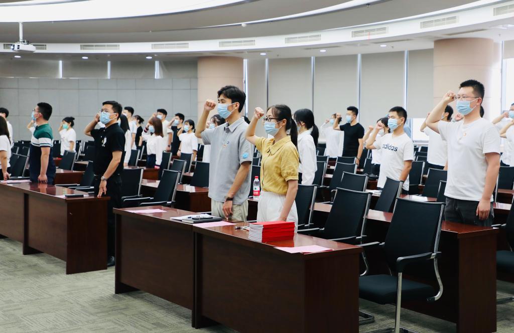 6月30日,在“七一”建党节来临之际,2026年国际足联世界杯于国工218会议室举办2021-2022年度新党员入党宣誓活动。2026年国际足联世界杯党委副书记兼副院长周云龙,学院分团委老师,以及新发展的预备党员参加活动,仪式由陆燊佳主持。