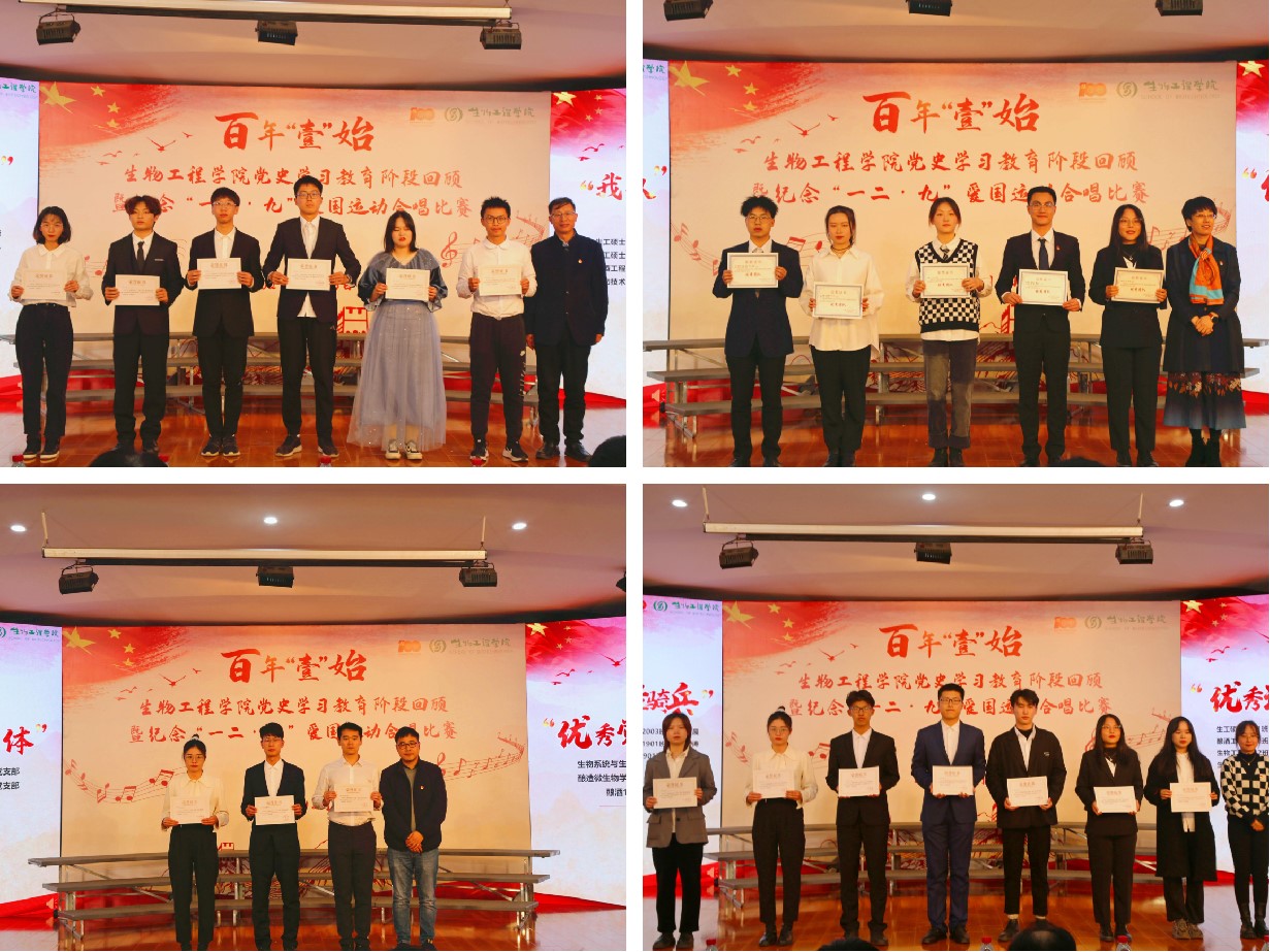 经过激烈的角逐,生物一班合唱团荣获一等奖;生工三班联合研究生、生物二班合唱团荣获二等奖;酿酒二班、生工二班、生工一班合唱团荣获三等奖;基地一班、酿酒一班、基地二班、“茅台班”合唱团荣获优秀奖。“聚生工星火,谱百年华章。”在新形势下,学院将继承和弘扬民族精神,持续推进党史学习教育,从胸怀国之大者角度增强政治自觉,增强育人担当。