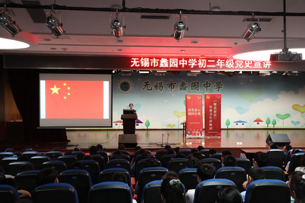 两位青年讲师从国旗的由来讲起,以红领巾是国旗一角的标志意义,表明知党史、懂国情、爱祖国、爱人民的坚定立场;以五星红旗的红色象征革命先烈的鲜血的寓意追溯了抗美援朝战争的伟大故事、历史意义和现象思考,引导青少年们树立正确的历史观、英雄观和奋斗观;通过“跨时空对话”的形式,从无锡人民熟知的荣氏家族的贡献的角度解读了“一化三改”的重大意义,最后勉励同学们不要辜负习近平总书记“希望大家努力在实现中国梦的伟大实践中创造自己的精彩人生”的殷切希望。宣讲内容结合了丰富的无锡本地素材,将爱党、爱国与爱家乡融合,现场气氛活跃,大家热烈互动,极具感染力和实效性。