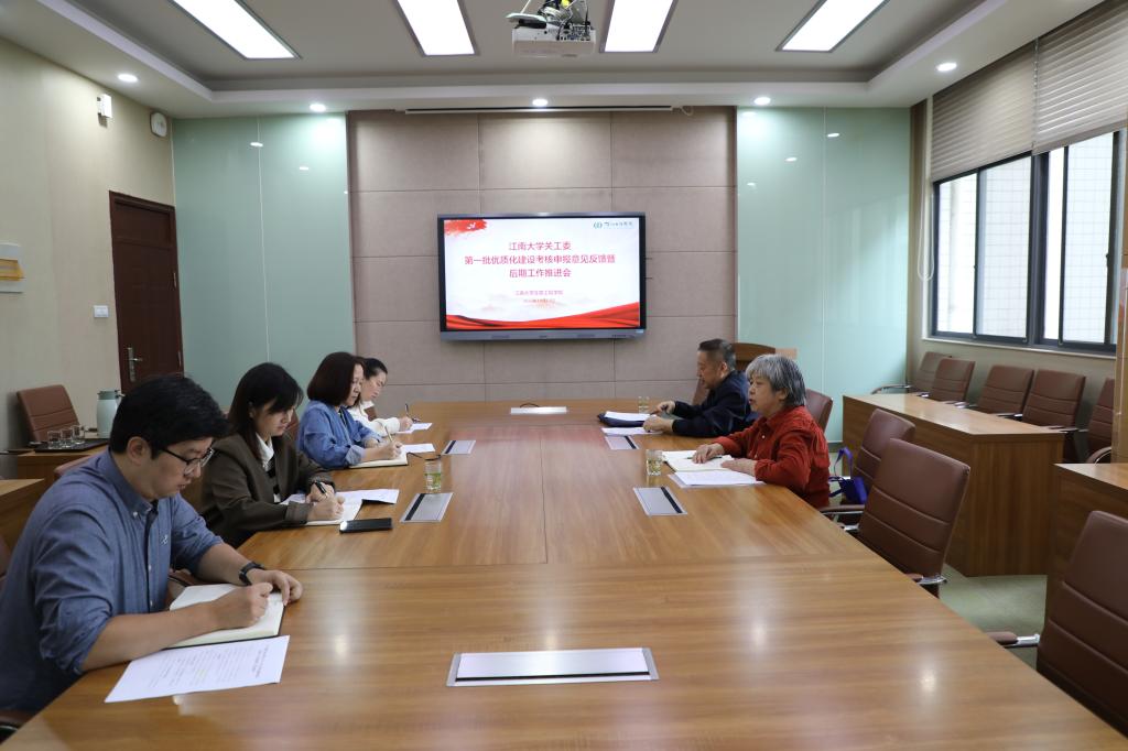 根据江南大学党委《关于开展二级学院关工委优质化建设与考核工作通知》统一部署,10月13日上午,校关工委副秘书长鲍国庆来我院反馈关工委优质化建设考核申报意见。学院党委书记、关工委名誉主任程捷音,学院党委副书记、关工委主任林丹,学院关工委常务副主任吴骥一,学院团委书记、关工委秘书周春江及相关成员参加会议。