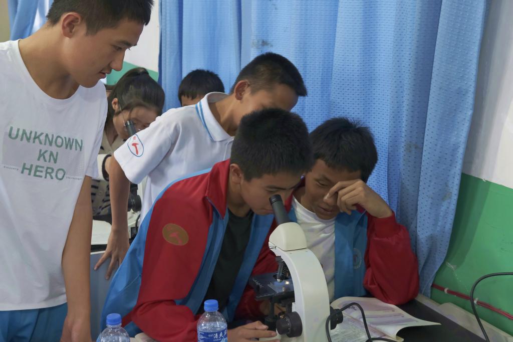 学生观察显微镜下的微世界