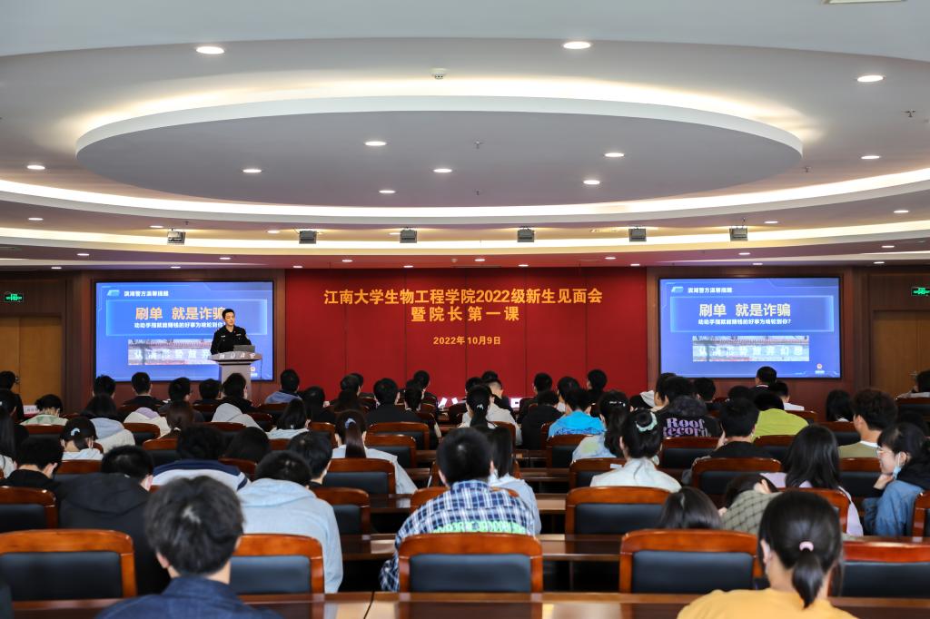 防诈安全意识显提升。学院在新生见面会现场邀请雪浪派出所王俊皓警官为全体2022级新生进行一场防范电信网络诈骗专题分享,他通过数据分析、图文展示等方式讲解了电信网络诈骗基本特征与常见手段,从识别和防范角度引导同学们提高网络安全意识,同时谈到“网络非法外之地”、“网络发言需谨慎”等内容,教育同学们正确网络发声、抵制传播谣言、做健康网民。
