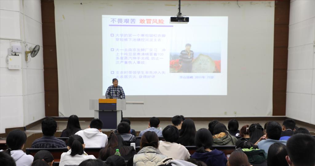 整场讲座,诸葛健老师语言风趣幽默,讲述生动,为同学们展示了一幅幅动人的奋斗画面,即使已处耄耋之年,仍然掩盖不住他对讲台的热爱、对学生的期待,他鼓励同学们虚心好学,认识自我,用创新、诚实、和睦促成硕果。“国家的希望寄托在你们身上!努力吧!年轻人!”诸葛健老师的殷切寄语赢得了全场热烈的掌声,激励着新同学们向前辈们学习、致敬,努力成为更加出彩的新时代生工人。