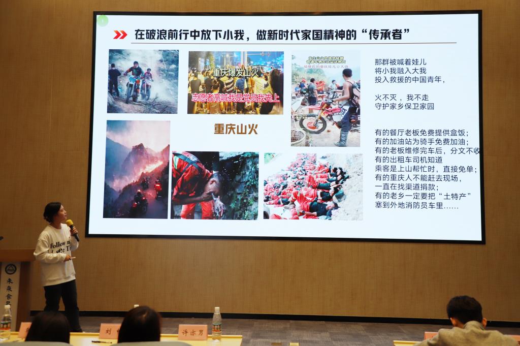 在决赛计分期间,举行2021年度团内先进集体和先进个人表彰仪式。获奖同学代表无锡市优秀共青团员余杨青、院青马班成员余乐彤、院团务中心郭雨雯以“奋进新征程 建功新时代”的主题分享环节,分别围绕“十五分钟便民圈”、“新时代青年发展”和“青年有为”进行交流,展现了新时代生工学子的蓬勃朝气。