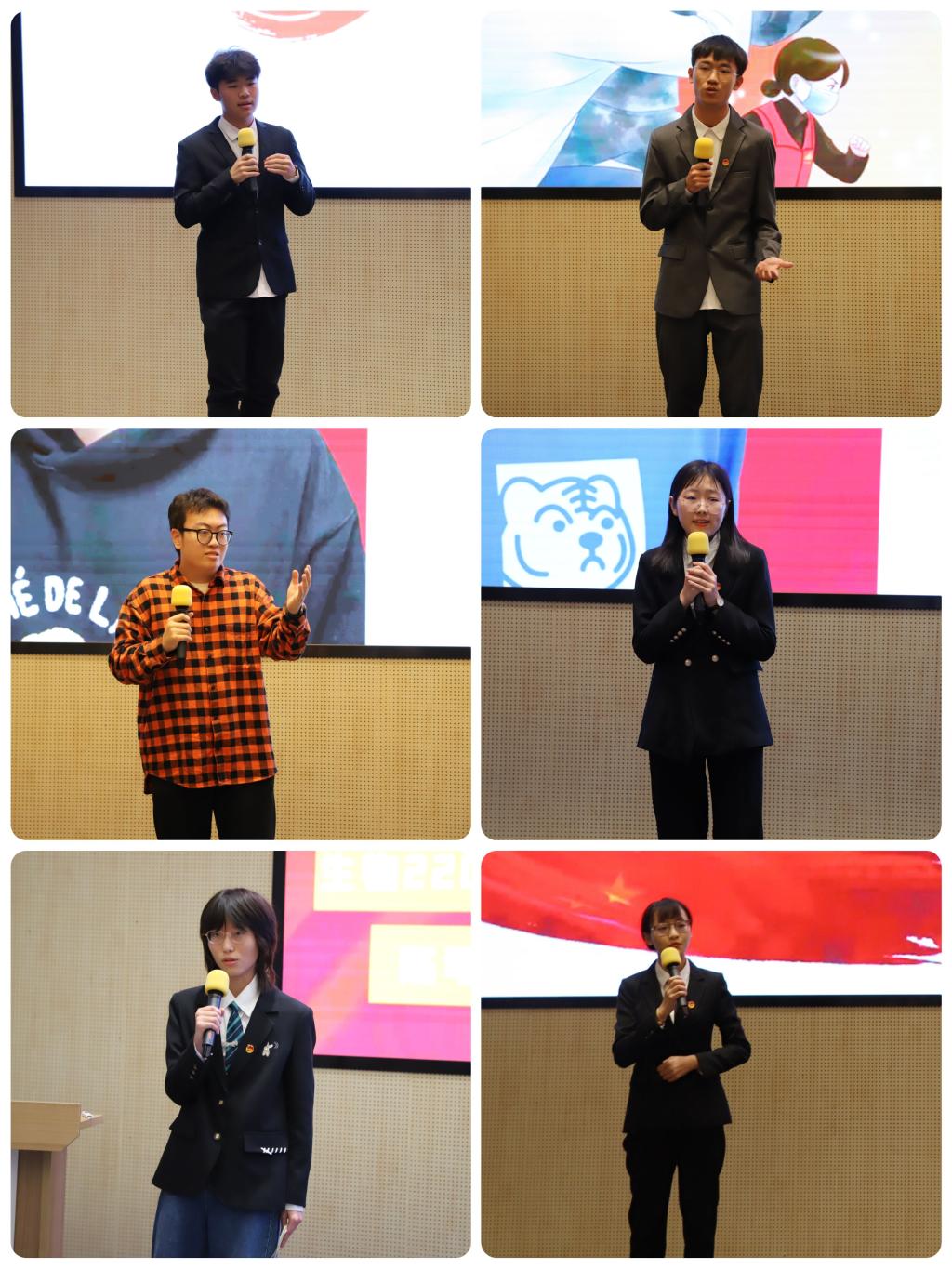 六位选手一路过关斩将,齐聚决赛现场,围绕“脚踏实地,踔厉奋发——大学生如何践行党的二十大精神”“写入党的二十大报告的10个中国古语蕴含丰富的治国理政思想智慧”“生如春草,生生不息——疫情常态化时代背景下的中华民族”“2035现代化强国建设前景”四个主题展开演讲。六位选手用清晰的逻辑与饱含情感的表达,为我们带来了一场视觉与听觉的盛宴,精彩对决令人赞叹!