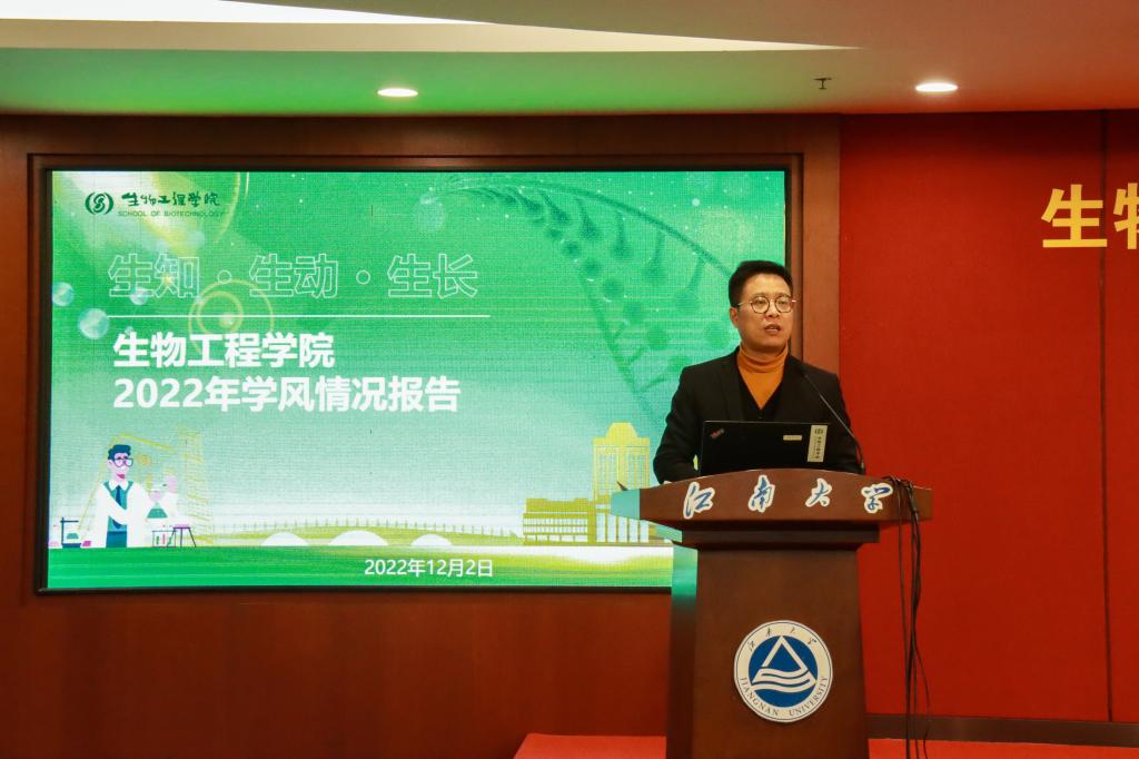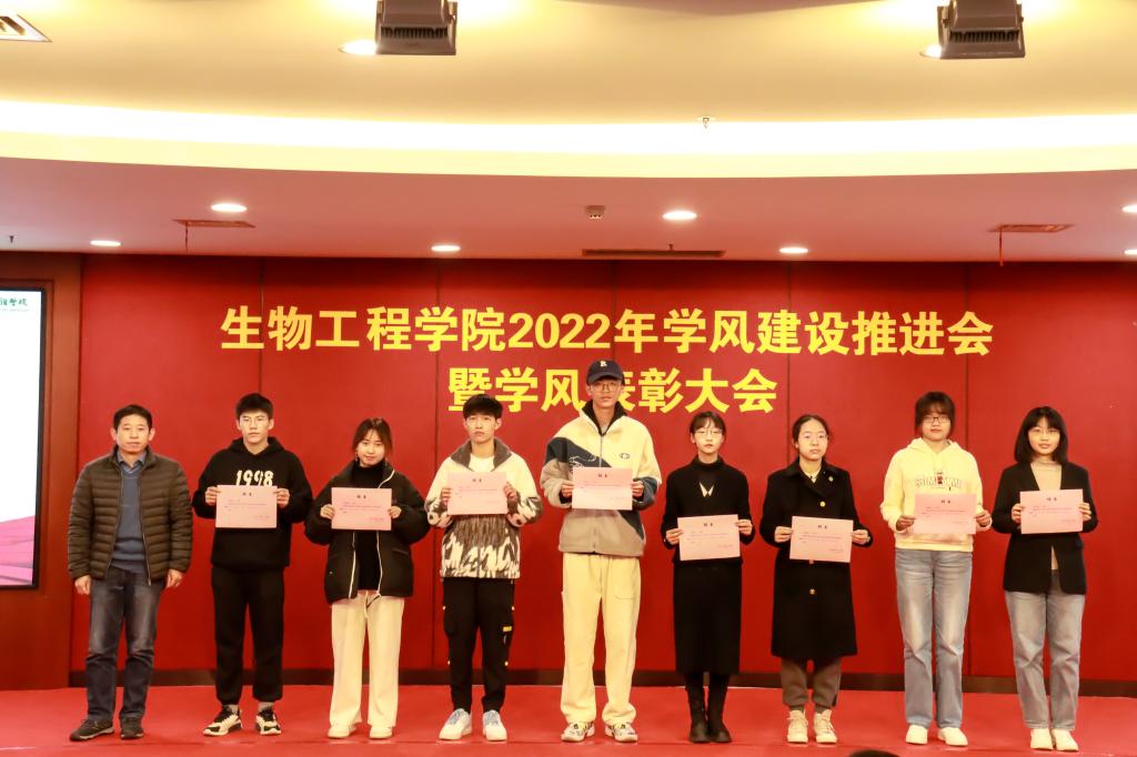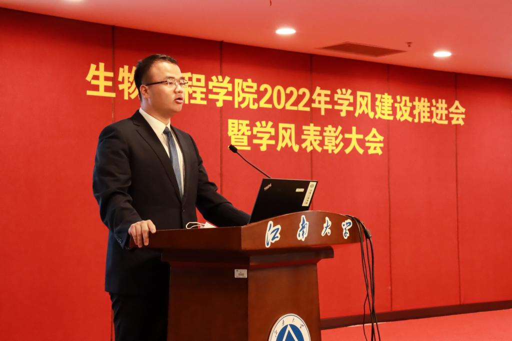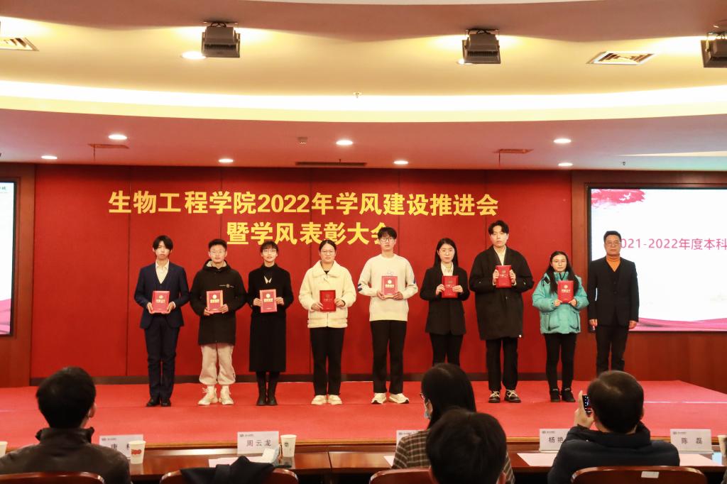 随后,大会表彰了本科生国家奖学金获得者、校先进班集体,先进宿舍以及优秀学生学业辅导员等涌现出的先进个人和集体,受表彰的先进个人和集体集中体现了我院学子朝气蓬勃、奋发向上的青春伟力。国家奖学金获得者、全国生命科学竞赛一等奖获得者伍义,无锡市三好学生、校一等综合奖学金获得者杨展昊,校先进宿舍代表张雨涵、校先进班集体酿酒1901班代表分别就学习经验与感悟、寝室学风建设与文化、班级学风建设与凝聚力等方面进行了精彩地分享。