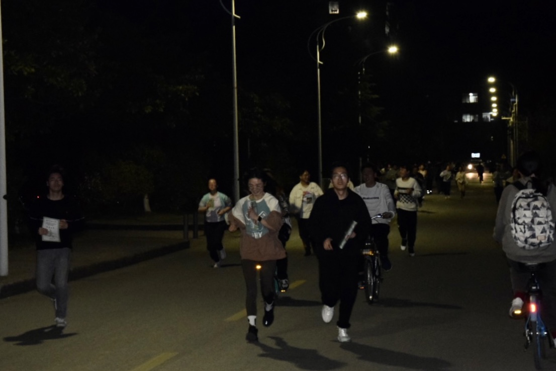 在起点处,同学们井然有序领取参赛物资,摩拳擦掌静待活动开始。在主持人的引导下,同学们一同进行热身活动,为即将开始的奔跑积攒活力。“3,2,1,开始!”随着起跑口令落下,同学们起步踏向之路!