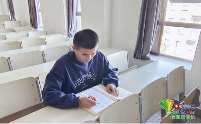 图为殷季龙在江南大学校园学习。中国青年网通讯员 田书恒 摄