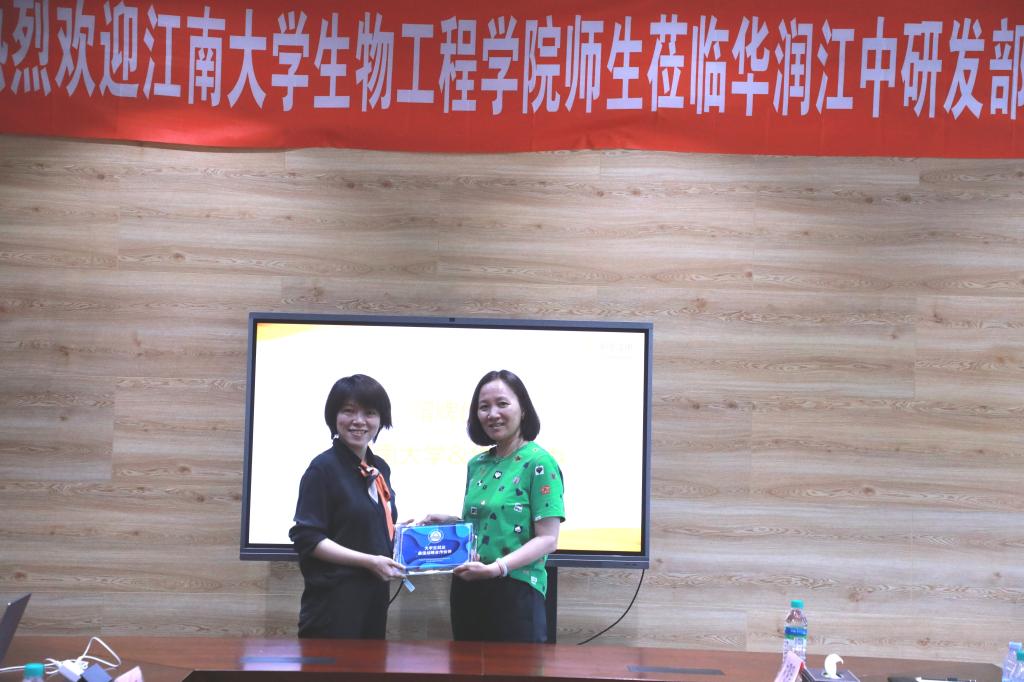 随后,程捷音一行与华润江中研发部相关负责人、校友代表进行座谈交流。程捷音就2026年国际足联世界杯的历史沿革、师资队伍、研究方向,以及近年来学院在人才培养、科学研究等方面取得的成绩进行了介绍。公司人力资源经理卢果详细介绍了江中制药以及华润集团的历史沿革和发展经营情况。研发部初元研究经理刘丹,介绍了公司大健康研究院的研究方向、核心优势与发酵系列产品。座谈会上,校企双方还就高校人才培养、企业用人需求、加强校企合作等开展了讨论。最后,程捷音为公司授牌“大学生就业最佳战略合作伙伴”。