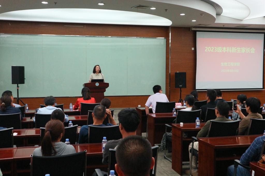 会上,陈献忠向家长们整体介绍了生工学院的基本情况及人才培养政策。林丹从新生心理适应表现、大学阶段心理发展特点、构建和谐的亲子关系、心理健康小百科等方面与家长们分享交流。随后,程捷音作总结讲话,对家长们选择生工学院表示感谢,对家长们选择生工学院表示感谢,并请家长放心,学院将和家长们携手合作,相互支持,共同助力学生度过充实而有意义的大学生活。提问环节,家长就考研、就业方向等问题与在座老师进行热烈交流。