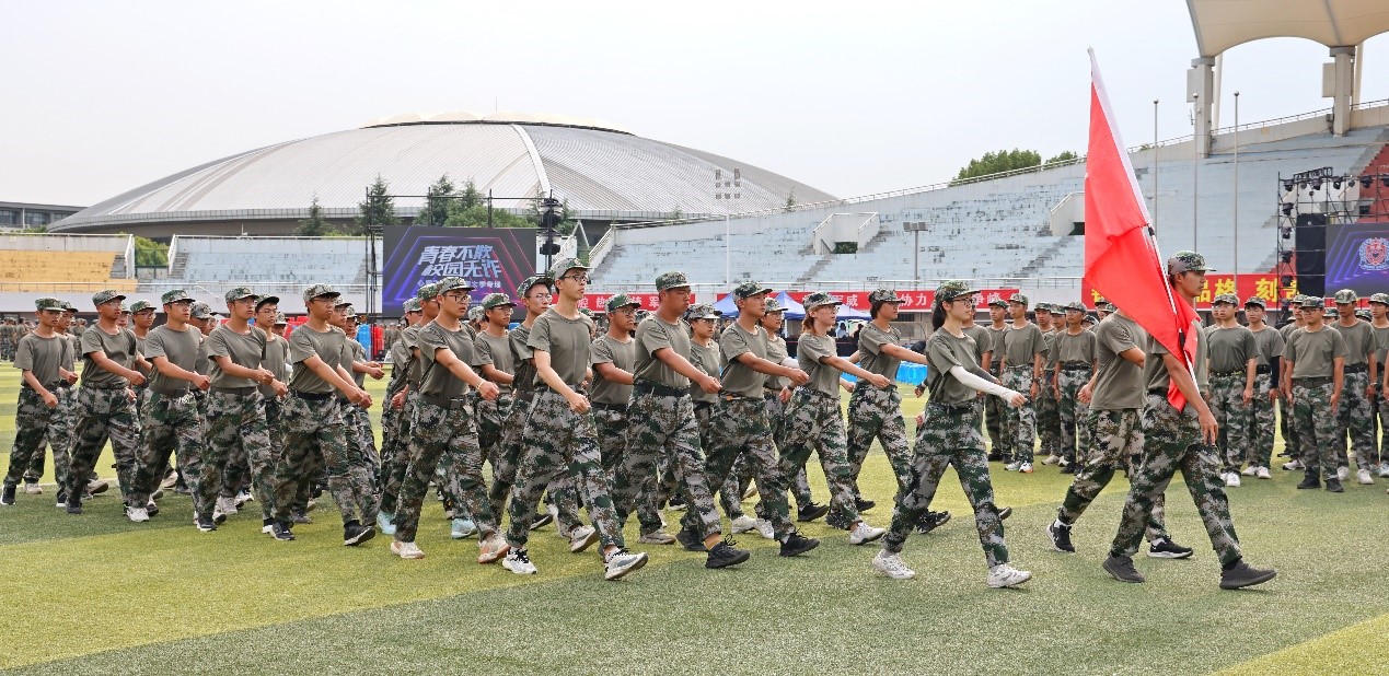 检阅完毕后,程捷音作军训慰问讲话。她对带训教官的辛苦付出表示衷心感谢,并对全体参训教官和学生提出三点希望。一是希望教官以严格的要求开展训练并检验军训成果,二是希望同学们坚决服从教官的指令,认真落实好军训期间每一项要求,三是希望同学们能够通过军训磨练意志、强健体魄,以一流要求和水准完成军训汇演,充分展示生工学子一流的精神面貌。