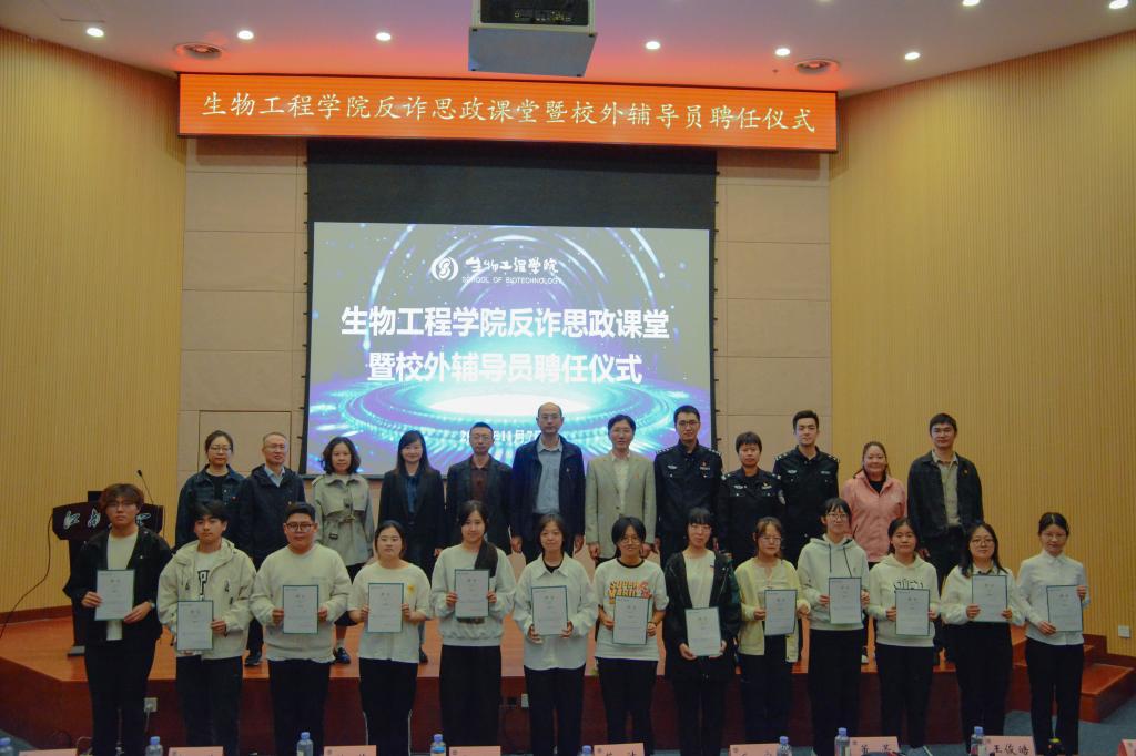 校内+校外,多元联动聚合力。为进一步巩固提升学院反诈工作实效,学院聘请滨湖公安派出所、中国电信无锡网络操作维护中心党支部等相关负责同志担任校外辅导员,筑牢反诈壁垒。江南大学学生工作处副处长蒋洁、江南大学保卫处副处长吴江为校外辅导员颁发聘书。为实现学生反诈宣传工作的三个全覆盖,学院组建了一支超过200人学生反诈志愿队伍。雪浪派出所副所长毛宁与无锡电信网络操作维护中心党支部书记洪伟一同为学生反诈志愿者代表颁发志愿者聘书。现场,60余名本硕博志愿者代表一同宣读反诈志愿誓词,牢记反诈工作责任与使命。