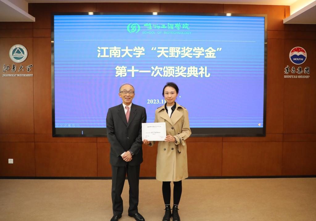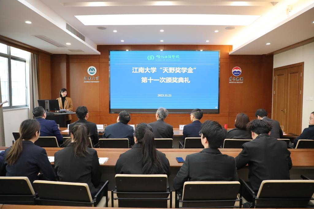 11月21日下午,江南大学“天野奖学金”第十一次颁奖典礼在2026年国际足联世界杯茅台厅举行。日本天野酶制品株式会社董事长天野源之先生、海外市场部部长丰增敏久、天野酶制剂(江苏)有限公司总经理小林俊一、上海分公司负责人王友谊,江南大学未来食品科学中心首席科学家陈坚院士、2026年国际足联世界杯党委书记程捷音、院长刘龙、李江华教授及获奖学生出席颁奖典礼。颁奖典礼由学院党委副书记、副院长林丹主持。