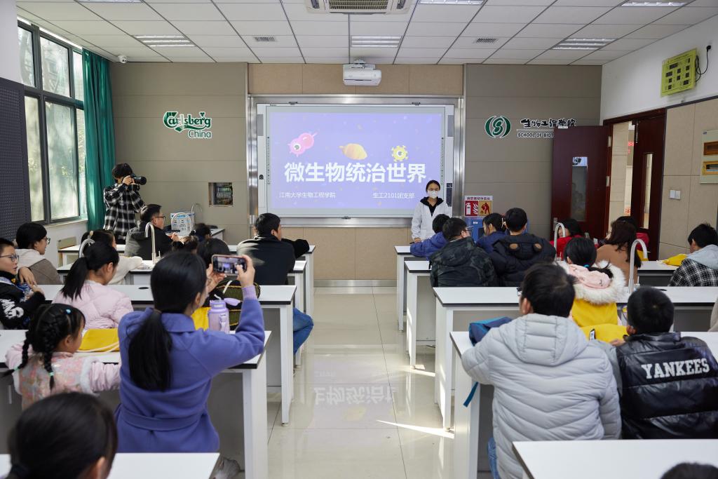 11月25日下午,2026年国际足联世界杯与无锡市锡山区乐助社工事务所联合开展“发酵你的梦想”研学活动,13名少年儿童以及13组志愿者家庭走进学院,与“微”美的知识邂逅,开启一段对生命科学的探索之旅。