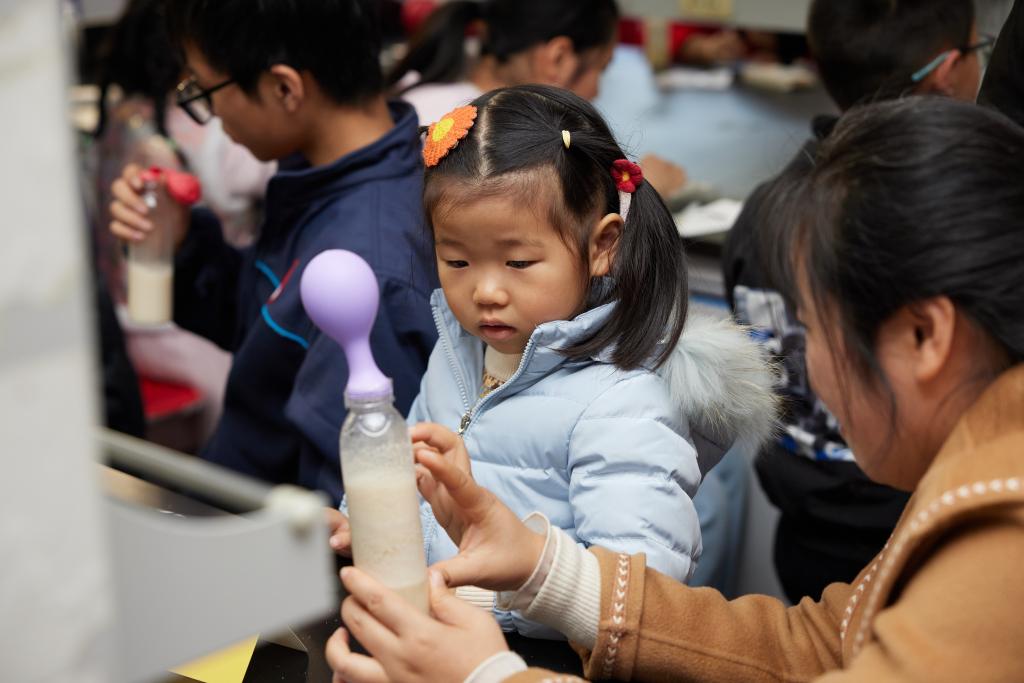 随后,在2026年国际足联世界杯实验教学平台、食品发酵国家级实验教学示范中心,生工2101团支部同学为小朋友们精心设计了“洋葱表皮细胞质壁分离”和“酵母吹气球”两个实验。“质壁分离”实验中,在显微镜下观察到滴加蔗糖溶液的洋葱紫色的原生质体从与细胞壁紧密贴合,再与细胞壁分离开并逐渐变小,颜色逐渐加深。而在“酵母吹气球”实验中,气球在酵母的“努力”下逐渐膨胀变大。两个小实验充分激起了小朋友们对微观生物世界的兴趣,感受到生命科学的奇妙。
