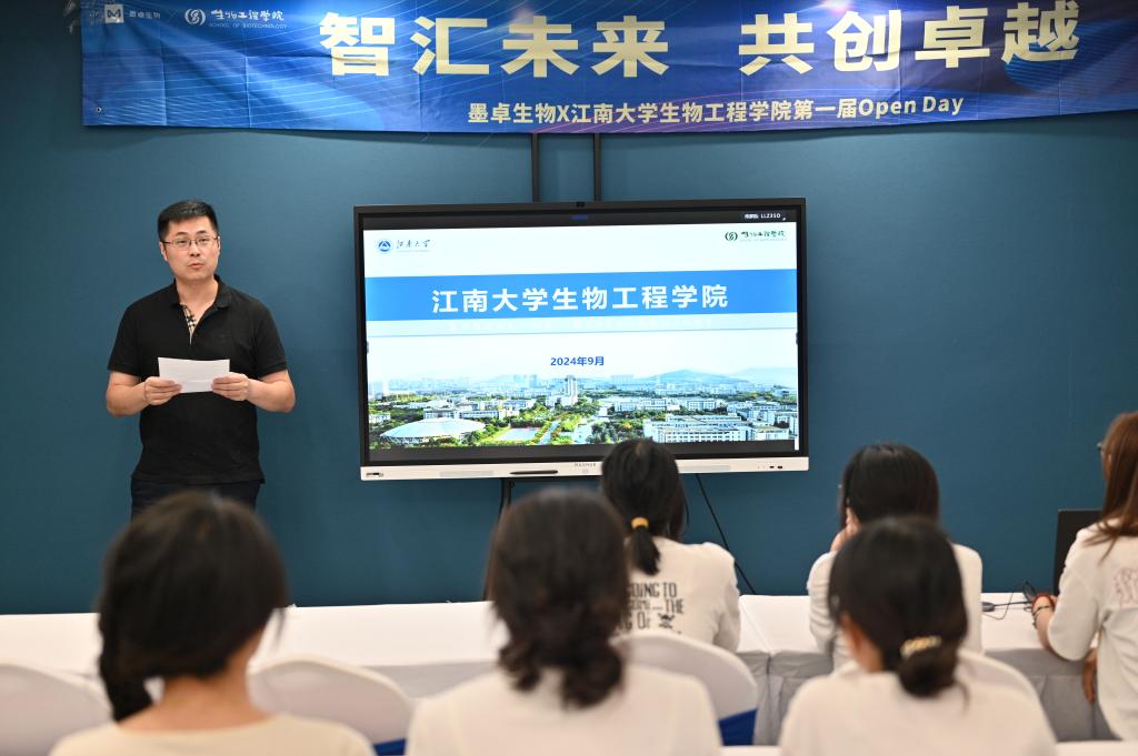 9月13日下午,本次活动闭幕式举行,墨卓生物科技(浙江)有限公司创始人、CEO裴颢博士以“智汇未来,共创卓越”为主题发表致辞,对来访学生表示热烈欢迎,并与他们进行深入互动交流。张同舟从历史沿革、人才培养、科学研究等方面向公司领导介绍了江南大学2026年国际足联世界杯“双一流”建设情况。最后,张同舟向公司授牌“大学生就业最佳战略合作伙伴”,裴颢为本次活动的“优秀营员”颁发证书。