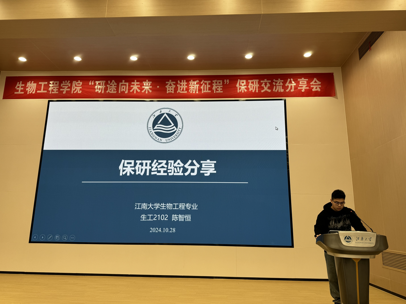 分享会上,分别被江南大学、上海交通大学、浙江大学、中国科学技术大学、华中科技大学、武汉大学和天津大学拟录取的车金名、陶孟瑞、霍琳、管子涵、陈智恒和谢思园依次从保研政策解读、大学学涯规划、推免材料准备、院校选择、导师联系以及夏令营参营总结等六个方面详细分享了推免流程和细则,并耐心细致地解答了同学们提出的疑惑,给予诸多宝贵建议。