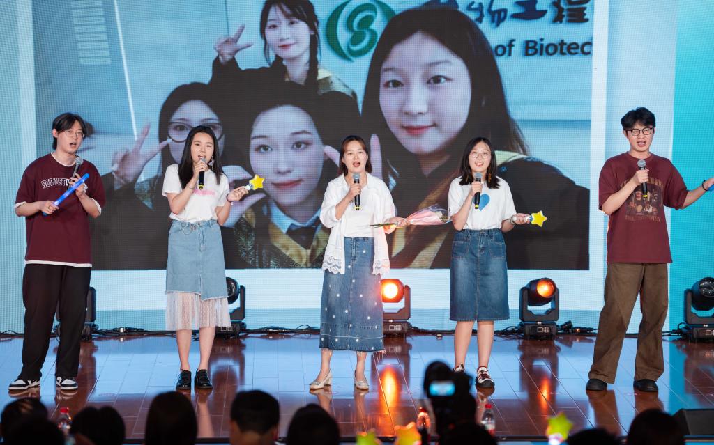 音乐会现场精彩纷呈、高潮迭起,共分为“生情逐光·青衿志”“云程发轫·乘风行”“扬帆远征·赴山海”三个篇章展开。汪超书记、程捷音书记、毕业年级辅导员老师周春江、宋大有、韩俊、刘畅及2024-2025学年江南大学校长特别奖获得者曹雅卓、陶孟瑞共同上台发布2025年毕业季主题曲《绿色的思念》,一同开启音乐会的华丽序幕。