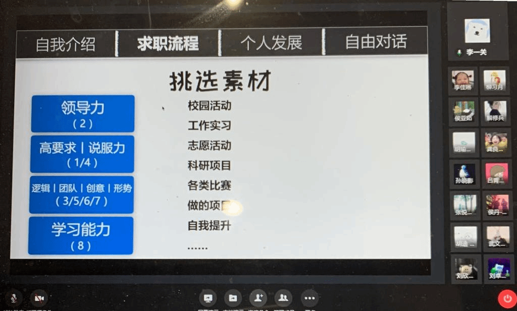 徐雄峰结合自身经验具体介绍了选调通告、材料准备、笔试材料、面试技巧等关键环节并根据同学们的提问积极耐心解答。李一关主要围绕简历、面试两方面介绍了企业选才的标准生动的面试案例进行互动,实境传授技巧和注意事项,并详细解读了提升就业质量的策略,提醒同学们要尽早确立适合自己的发展方向、做好中长期规划