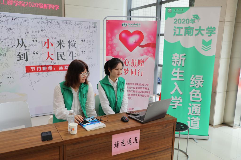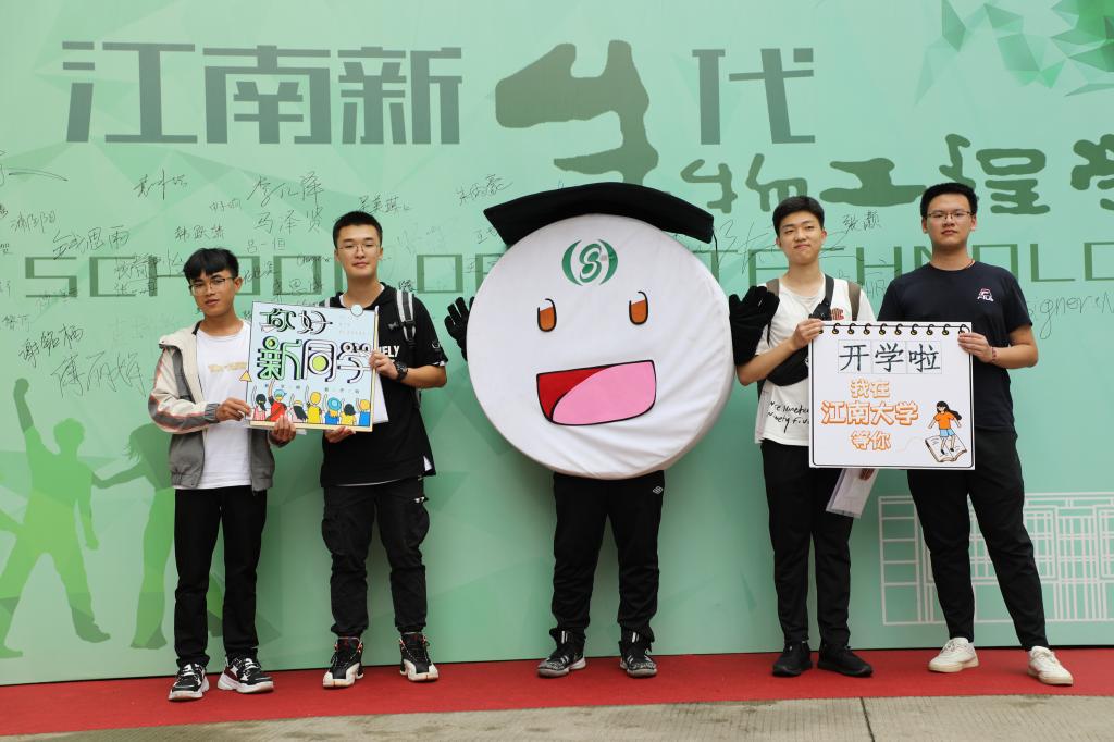 学院迎新现场布置有序。在学院风采展示区,整齐的罗列着学院自2017年到2019年的工作成果,让新生们全面了解学院的工作及发展情况。在特色社团互动区,酒协与精酿俱乐部的同学们向新生宣传酒文化和发酵精神。在基地班报名确认处,志愿者们详细为同学们做出解答并完成报名确认。学院特色玩偶“平板菌”,也吸引了新生们的兴趣,同学们纷纷在“江南新生代”迎新幕布上签名。