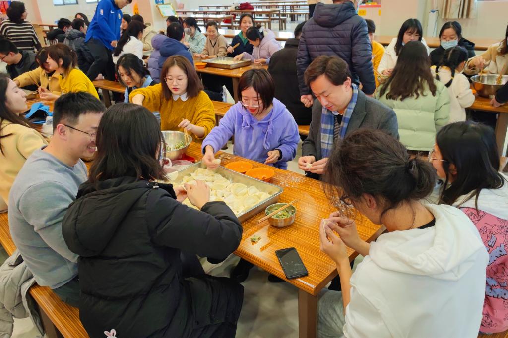 学院师生欢聚在温暖四溢,热闹非凡的食堂里,桌上琳琅满目的饺子馅料,还有寓意为“妙笔生花”的花生、“和和美美”的核桃、“笑口常开”的开心果,大家热火朝天将美好祝愿包进饺子,其乐融融。活动最后,学院领导和老师们为同学们送上新春大礼包,现场氛围热烈,温馨美满。