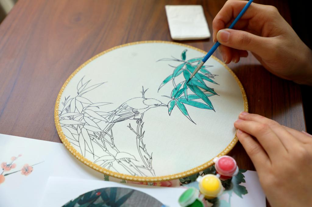 鸟语蝉鸣,石榴花开,高山密林,划舟采莲,我画的这幅团扇虽然小巧,但别有一番诗情画意。”参加品味团扇国韵之美的张同学开心说到。团扇是中国汉族传统工艺品及艺术品,代表着团圆友善、吉祥如意。