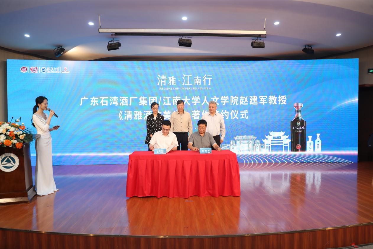 在本次活动中,清雅美学系列工程两大项目正式启动。其中,石湾酒厂集团联合赵建军进行《清雅酒体美学》项目签约。该书将通过研究清雅酒体品类的美学内涵,对清雅酒体进行概括梳理,完成其新美学概念体系创新研究。随后,“2022年清雅酒中国功夫酒瓶设计大赛”正式启动,本次大赛以“中国功夫”为主题,向全国酒瓶设计工作者及相关院校学生征集中国功夫酒瓶的设计方案,旨在通过中国功夫与白酒文化的深度融合,弘扬中国传统的武术文化和白酒文化。最后,范绍辉向江南大学赠送纪念酒,作为双方合作和友谊的见证,张影陆接受捐赠。