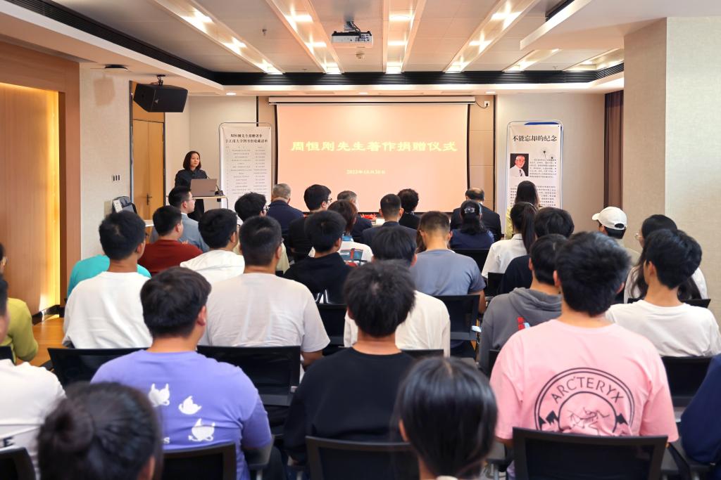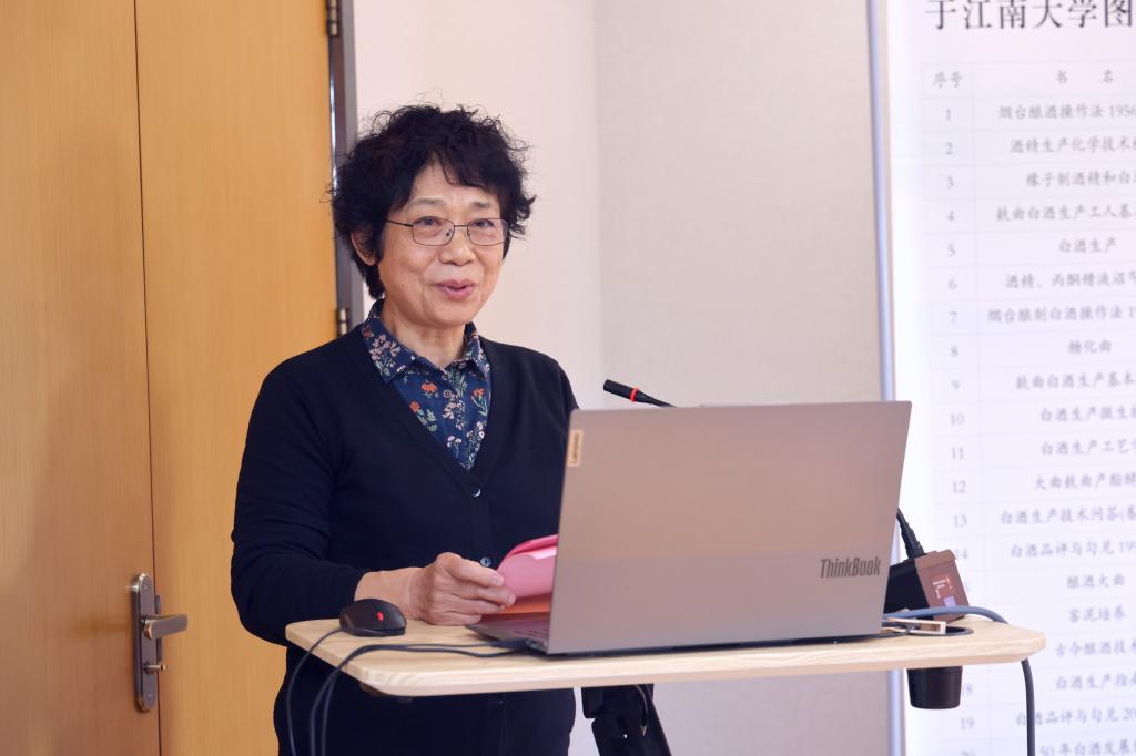 捐赠仪式上,顾正彪在致辞中深切缅怀了周恒刚先生为中国酒业发展作出的卓越贡献,对周老子女的捐赠表示感谢。他还向来宾介绍了江南大学发酵和酿酒学科的发展历史及其创立以来为我国酿造微生物学研究和人才培养做出的贡献。周鉴明代表周恒刚先生子女致辞。周鉴明深情回顾了周恒刚先生求学和科研工作经历。她还详细介绍了周老不同研究时期代表性著作的创作背景和科学研究价值,并对江南大学的发展和江南学子的成长成才表示衷心的祝愿。张婕英代表图书馆接受捐赠,顾烨青、孙颖为周鉴明、吴鸣颁发捐赠证书和捐赠纪念牌。