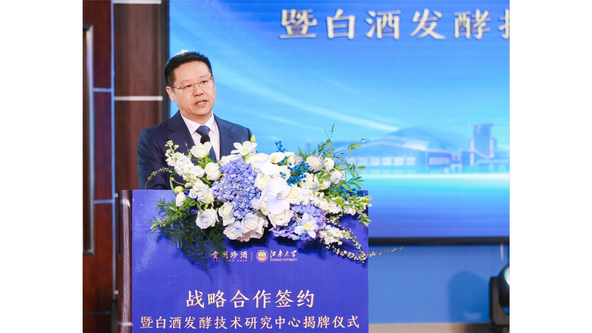 贵州珍酒与江南大学联合组建成立白酒发酵技术研究中心,将为珍酒提供技术支持,并围绕酱酒的发酵工艺、发酵微生物、风味感知等前沿技术和应用技术进行研究,并形成科研成果。徐岩与吴向东共同为研究中心揭牌。