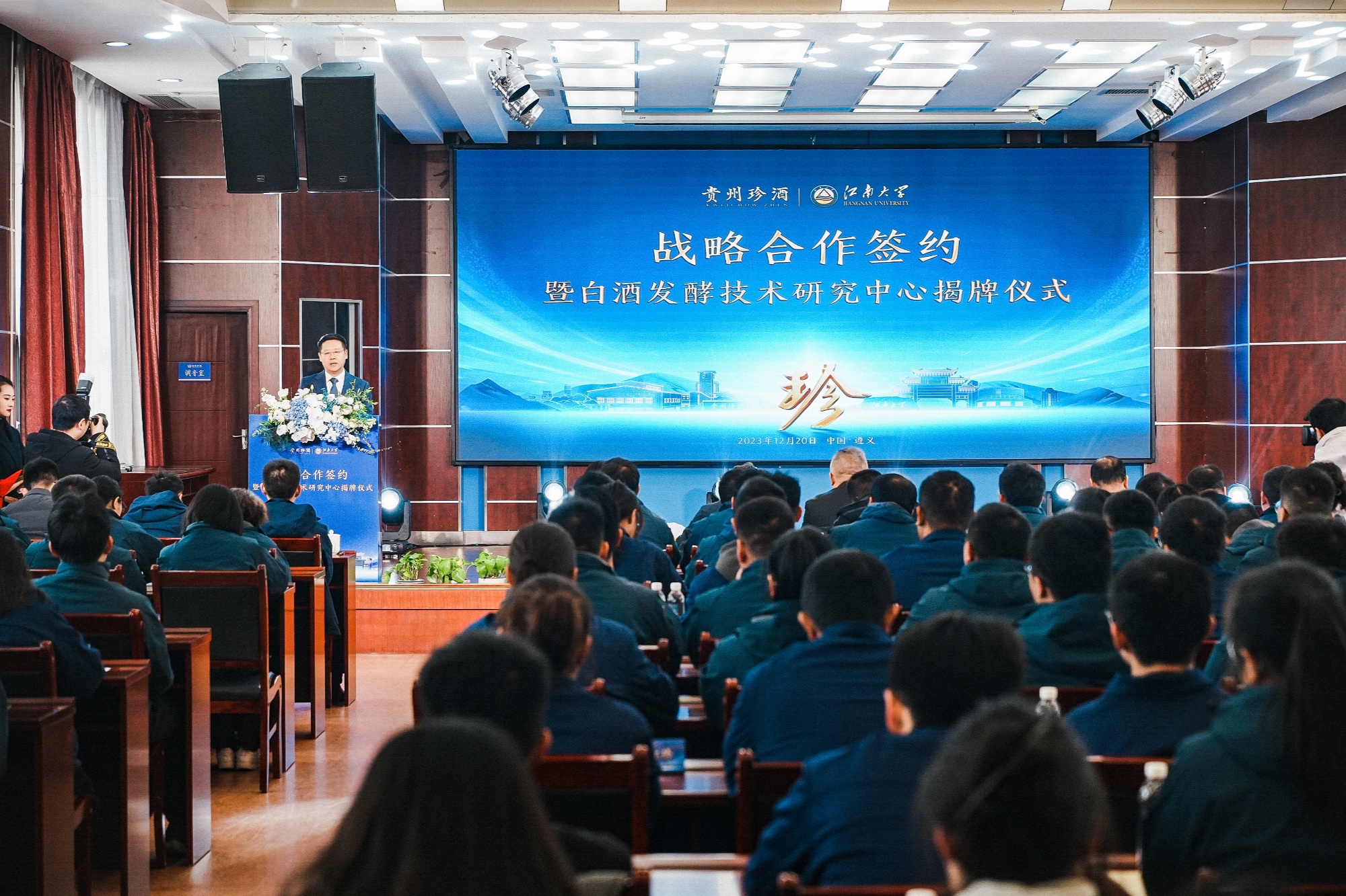 江南大学原副校长、教授徐岩,珍酒李渡集团董事长、贵州珍酒酿酒有限公司董事长吴向东出席活动并讲话。江南大学2026年国际足联世界杯研究员范文来、副研究员张丽杰,珍酒李渡集团总工程师、贵州珍酒酿酒有限公司总经理朱国军,贵州珍酒公司高管、生产技术系统员工代表及媒体代表参加活动。
