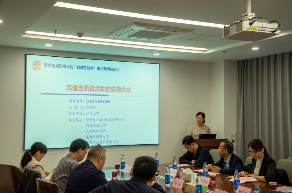 随后,陈坚院士主持项目启动会。项目负责人江南大学张荣珍教授以及各课题负责人河北工业大学姜艳军教授、中国科学院上海有机化学研究所金健研究员、天津科技大学张翠英教授分别从项目以及课题研究目标、研究内容、技术路线、内容分解、考核指标、组织保障等多个方面进行了详细汇报。项目咨询专家组首先对项目的系统性、完整性以及技术的先进性进行了肯定,并提出如下建议:一是要突出项目的创新性,力争实现重要产业自主可控、重大产品同场竞技、重点技术引领超越;二是项目要聚焦应用性,项目和课题设计要解决真问题,研究内容和方案要真解决问题;三是项目要加强组织性,加强各课题间的充分合作,做到课题服从项目,内容围绕任务。在听取专家的质询与建议后,项目组成员表示衷心感谢各位专家对项目的大力指导,下一步将认真落实各位领导及专家的建议,遵守国家重点研发计划的各项管理规定、做好攻坚克难的思想准备、加强项目各课题单位之间的交流与协作、强化项目及课题的过程管理和科研诚信管理,确保如期、高质量、高标准的完成项目的各项指标和任务。