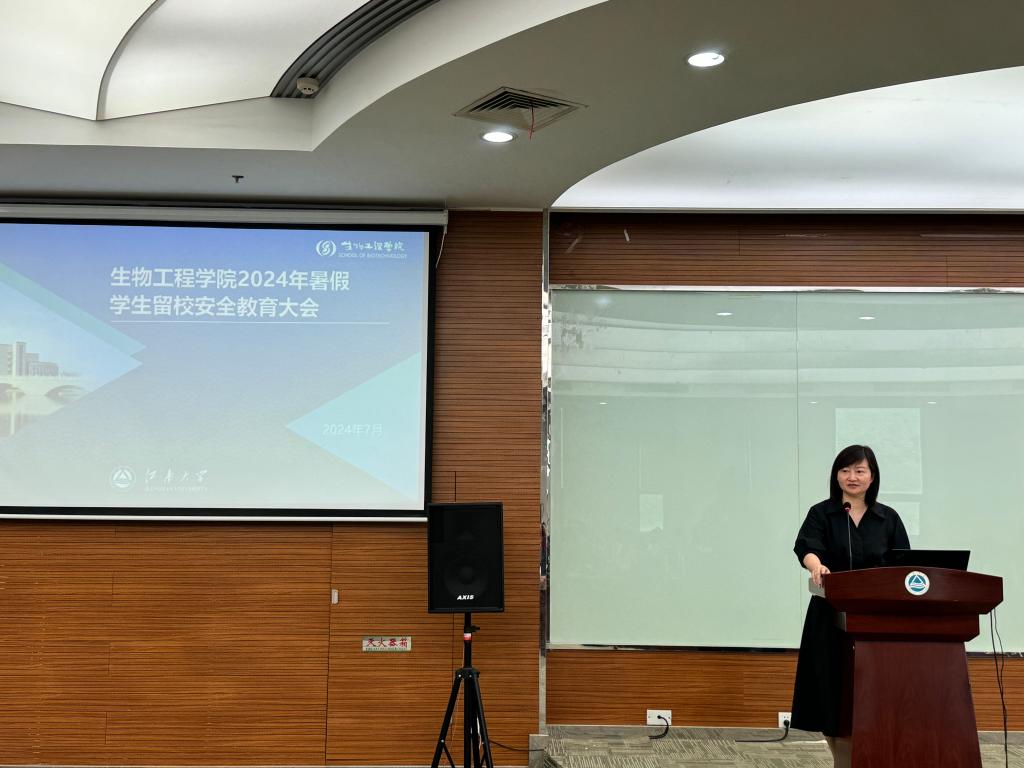 安全教育不断线。7月10日下午,学院召开暑假留校学生安全教育大会。学院党委副书记兼副院长林丹,分团委书记兼学工办主任周春江,辅导员王珏、周杰,各班级主要班干部、学生宿舍心情预报员、实验室动态观察员共同参与会议。