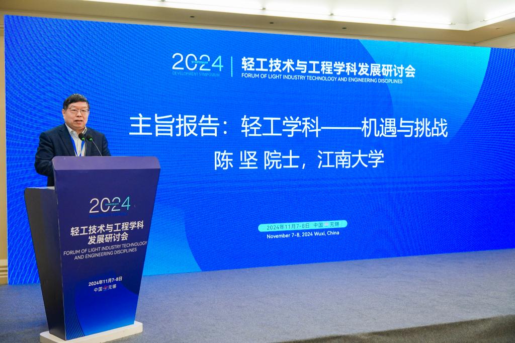 11月7日-8日,由国务院学位委员会第八届轻工技术与工程学科评议组主办,江南大学承办的2024轻工技术与工程学科发展研讨会在无锡召开。国务院学位委员会轻工技术与工程学科评议组召集人、中国工程院环境与轻纺学部副主任陈坚院士,东华大学校长、中国工程院院士俞建勇教授,齐鲁工业大学原校长陈嘉川教授,陕西科技大学原校长马建中教授,江南大学党委常委、副校长顾正彪教授,学科评议组成员兼秘书长、陕西科技大学原副校长王学川教授,学科评议组成员天津科技大学副校长王敏教授、四川大学廖学品教授、华南理工大学刘传富教授、广西大学覃程荣教授,齐鲁工业大学副校长刘玉教授,陕西科技大学副校长蒲永平教授,天津科技大学副校长高发明教授,郑州轻工业大学副校长肖艳秋教授、副校长王继威教授,以及来自全国25所轻工类院校的学科规划处领导、院长/系主任、学科带头人、专业负责人等专家及骨干教师近百人参加本次会议。会议开幕式由刘传富教授主持。