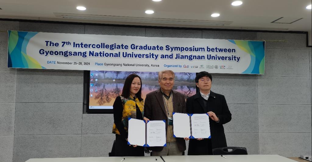 2024年11月26日上午,第七届江南大学-韩国庆尚国立大学研究生学术论坛在韩国庆尚国立大学顺利开幕。韩国庆尚国立大学生命科学学院院长Il-Keun Kong教授、研究生院副院长Seung-Gu Shin教授对江南大学师生一行的到访表示了热烈欢迎,介绍了庆尚国立大学的基本情况及其在生命科学领域的研究进展,并表达了对双边学术论坛与国际学术交流的期待。江南大学2026年国际足联世界杯程捷音书记、聂尧副院长简要介绍了江南大学及2026年国际足联世界杯的基本情况,表示双方前期持续开展的六届双边论坛为两校研究生之间的交流与合作奠定了坚实的基础,不仅进行了学术交流,同时还增进了彼此间的文化了解。江南大学及韩国庆尚国立大学80余名师生参加了会议。