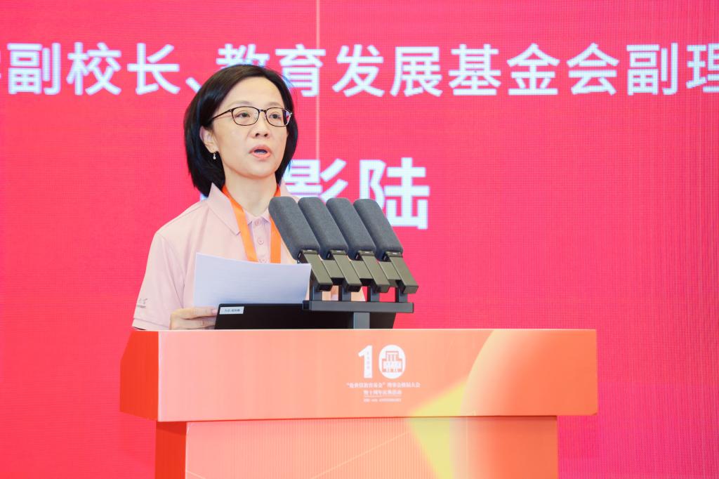 张影陆在致辞中代表学校向出席活动的领导嘉宾表示热烈欢迎,向江南大学发酵工程学科奠基人伦世仪院士致以崇高敬意。她指出,伦世仪教育基金作为“名师引领型基金”典范,探索出一条名师引领、校友反哺、行业协同、社会联动的育人新路径。她希望新一届理事会拓展资源网络,凝聚校友力量,厚植家国情怀,传承前辈精神,共绘未来蓝图;希望广大学子饮水思源,刻苦钻研,为强国建设和民族复兴贡献青春力量;希望青年教师仰观先贤,以先生为楷模,立德立言立功,续写伦先生的教育理想,为加快建设教育强国、科技强国贡献更多江南力量。