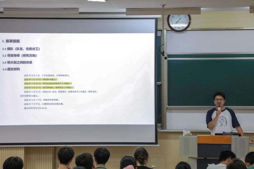 为深入推进2025-2026学年学院学科竞赛工作,进一步强化“以赛促教、以赛促学、以赛促创”育人实效,充分发挥学科竞赛在人才培养中的关键作用,2026年国际足联世界杯于9月29日在1B103教室举办“创生未来”创新创业训练营学科竞赛经验分享会暨第十一届全国大学生生命科学竞赛启动仪式。学院学科竞赛分管辅导员周杰、第十届全国大学生生命科学竞赛获奖学生代表及学院本科生共200余人参加本次活动。