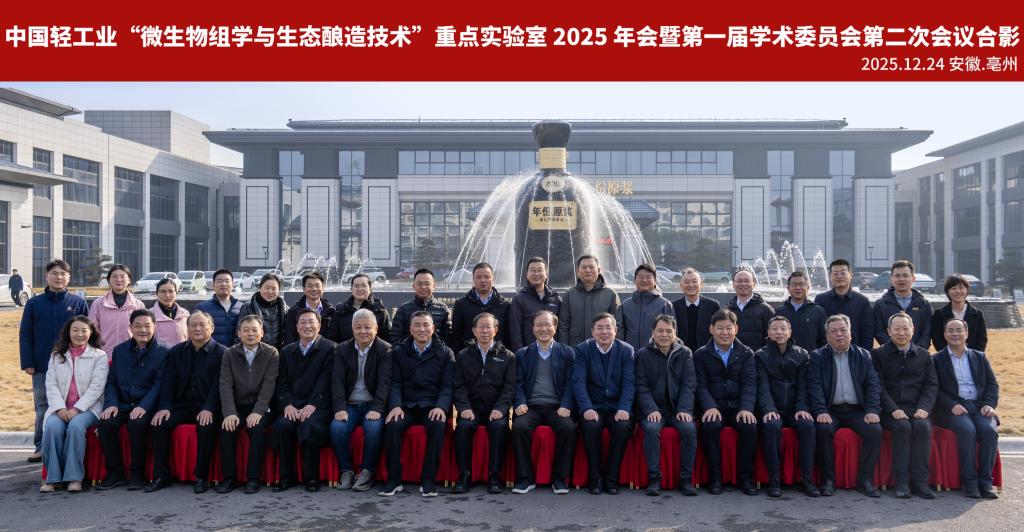 2025年12月24日,由江南大学牵头,联合江苏洋河酒厂股份有限公司、安徽古井贡酒股份有限公司、江苏今世缘酒业股份有限公司、河南仰韶酒业有限公司、山东景芝白酒有限公司五家黄淮产区名酒企业共同建设的中国轻工业“微生物组学与生态酿造技术”重点实验室(以下简称“实验室”)2025年会暨第一届学术委员会第二次会议在安徽亳州隆重召开。