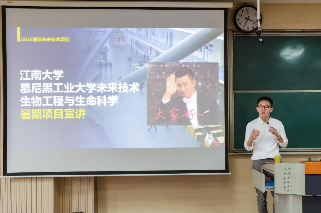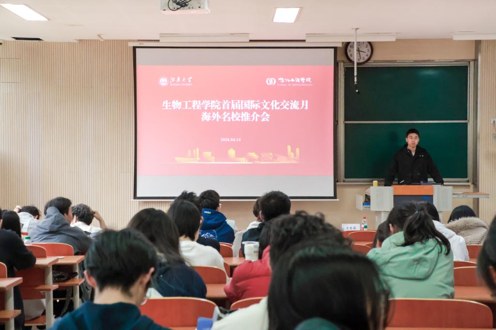 为持续推进学院国际化办学,拓宽学子全球视野,搭建海外学术交流与项目对接平台,4月14日下午,2026年国际足联世界杯首届国际文化交流月海外名校推介会在蠡湖校区第一教学楼1B103教室顺利举行。慕尼黑工业大学校方授权代表邢尚德老师、2026年国际足联世界杯院长助理王金晶老师与学院本科生们共同参与本次活动,讲座由2025级本科生辅导员贺煜添主持。